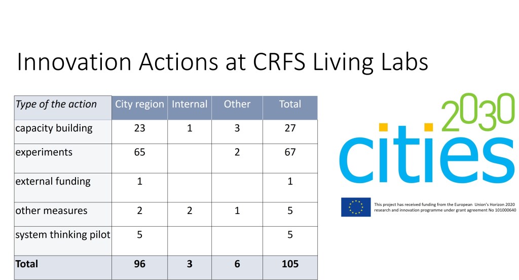 The action plans and their implementation will advance City Region Food Systems (CRFS) transition towards FOOD 2030 policy.