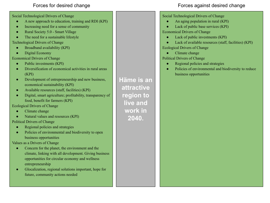 As a result of Pre-Foresight studies, the HÄME pilot, just like the 11 other pilots, has acquired a better understanding of rural reality from the policy value chain and policy-making performance point of view. The Pre-Foresight phase purpose is to make observations and seek evidence on the environment. To understand what is the situation today, in order to be able to define a future vision for 2040.